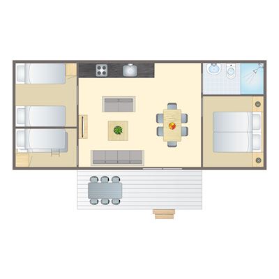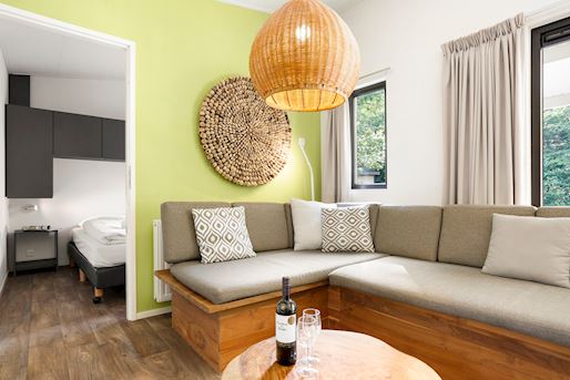 - Zwei Schlafzimmer mit jeweils zwei Boxspring-Einzelbetten